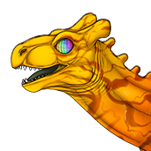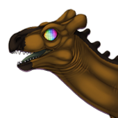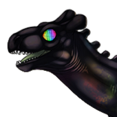 This dragon's appearance is...odd. Her headknobs are round and full at the bases before tapering up to points. In comparison to her head, which is rather triangular, her eyes are massive (and extremely keen). Unlike the smooth sails that most dragonkin possess, hers are jagged at the edges. The humeral portions of her limbs are quite short compared to the radial/ulnar portions. As a result, it may be more comfortable for her wings to rest in a semi-spread state rather than folded neatly against her sides. Amongst these odd features her tail stands out - short, wide, and somewhat flat, it seems almost at odds with her thin torso.Only time will tell whether her strange features prove physically hindering or simply mark her as visually bizarre.