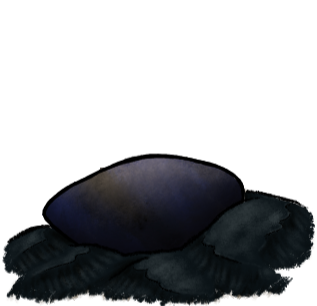 Sun Met in Darkness is small and sleek and resembles polished obsidian. The egg looks smooth as glass, as if one were to pick it up, it would immediately slip out of their fingers. Its surface has a metallic sheen, with small silver markings etching a feathery pattern across its surface. The base of the egg has a few hints of deep blue, which fade neatly into the rest of its inky surface. While it shines beautifully in the light, it makes its presence known in the dark as well - its energy is palpable, especially as one draws near to it. It's comfortable in its spot, and doesn't seem to care to move much.